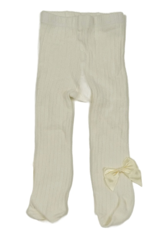 Smetanové žebrované punčocháče s mašlemi