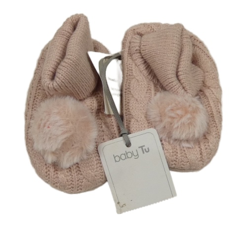 Nové - starorůžové pletené capáčky s bambulkami Tu