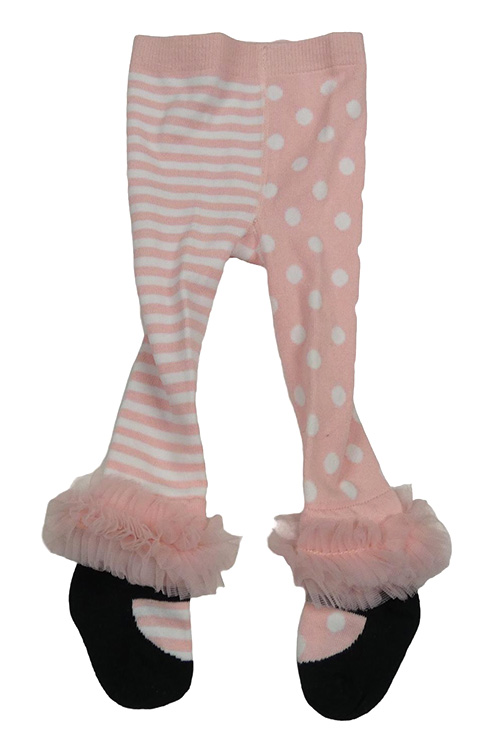 Růžovo-bílé punčocháče s pruhy a puntíky
