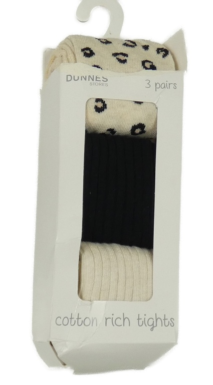 • Nové - 3x punčocháče - krémové vzorované + černé žebrované + světlebéžové Dunnes