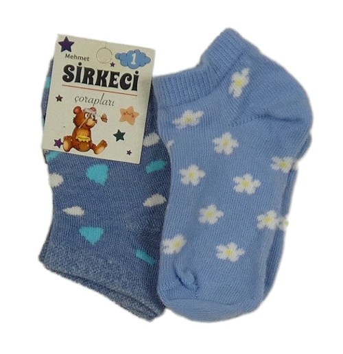 Nové - 2x - Ponožky - Modré melírované vzorované, modré s květy