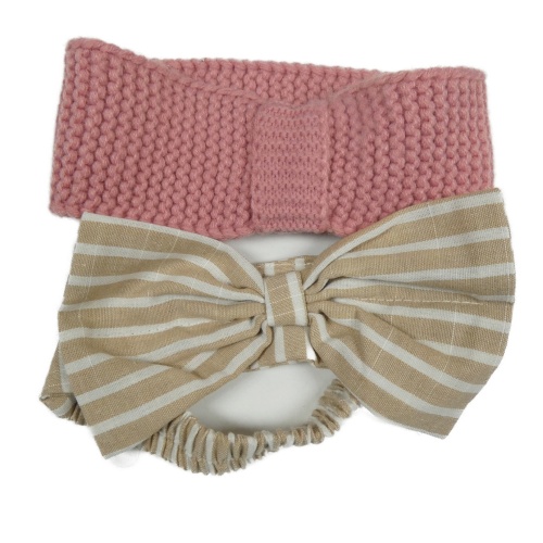 2set - 2x čelenka - růžová pletená + béžovo-bílá pruhovaná s mašlí