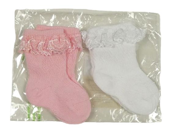 Nové - 2x ponožky s krajkovým volánem - růžové + bílé