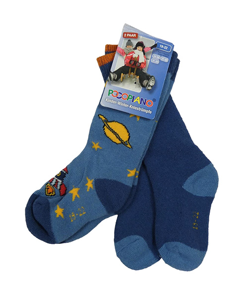 Nové - 2x ponožky - modré s hvězdami a raketou + tmavomodré Pocopiano