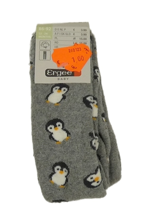 • Nové - šedé melírované teplé punčocháče s tučňáčky Ergee