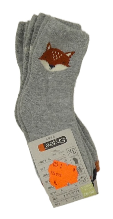 • Nové - 3x - Šedo-rezavé ponožky se zvířátky Ergee vel. 19-22