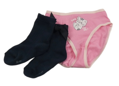 2Set - Růžové kalhotky s kočičkou + tmavomodré žebrované ponožky s mašlí
