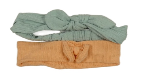 2x čelenka s mašlí - zelená žebrovaná + oranžová žebrovaná
