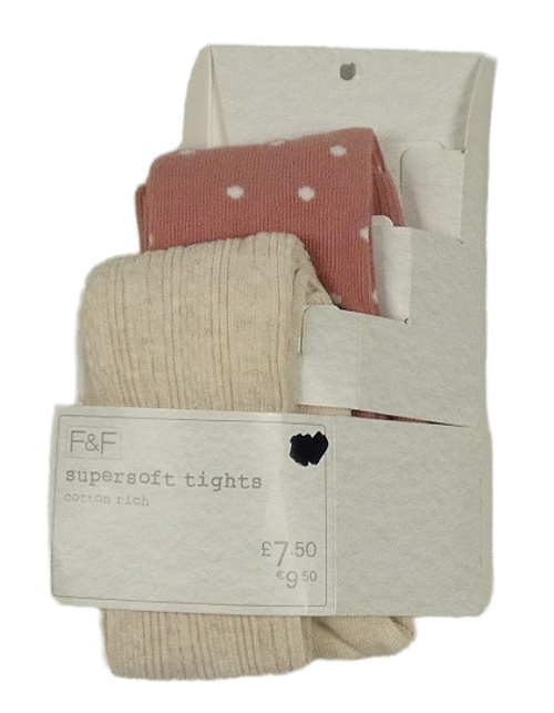 Nové - 2x - Smetanové + růžové punčocháče s puntíky F&F