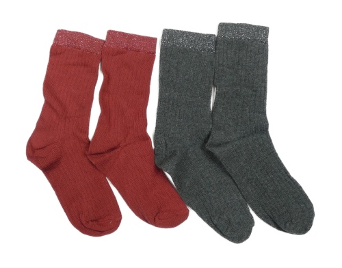2x - Žebrované ponožky se třpytkami - Rezavé, tmavošedé melírované
