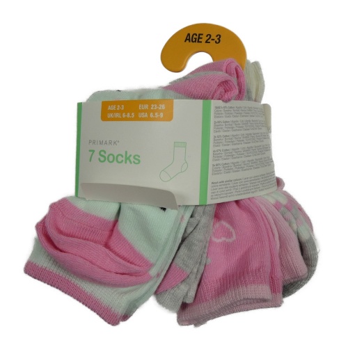 • Nové - 7x - Ponožky - Světlerůžovo-mátovo-růžovo-pruhované s jednorožci PRIMARK vel. 23-26