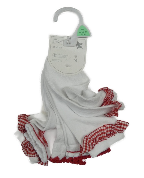 Nové - 5x bílé ponožky s červenými volánky F&F vel.23-26