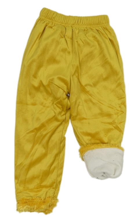 Tmavožluté plyšové podšité kalhoty s kožešinou