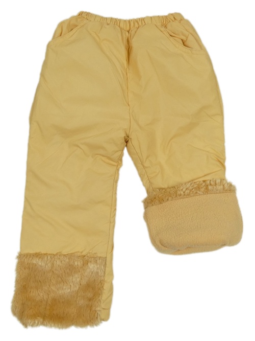 Béžové šusťákové zateplené kalhoty s kožešinou