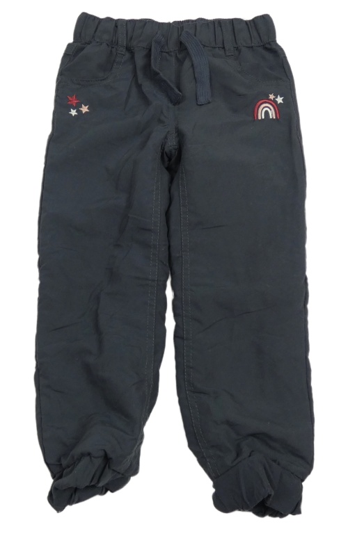 • Tmavošedé cuff šusťákové podšité kalhoty s duhou a hvězdičkami Topolino