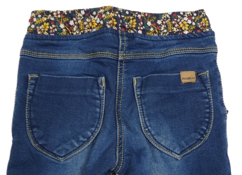 Tmavomodré rifle s květinovým pasem PUsblu