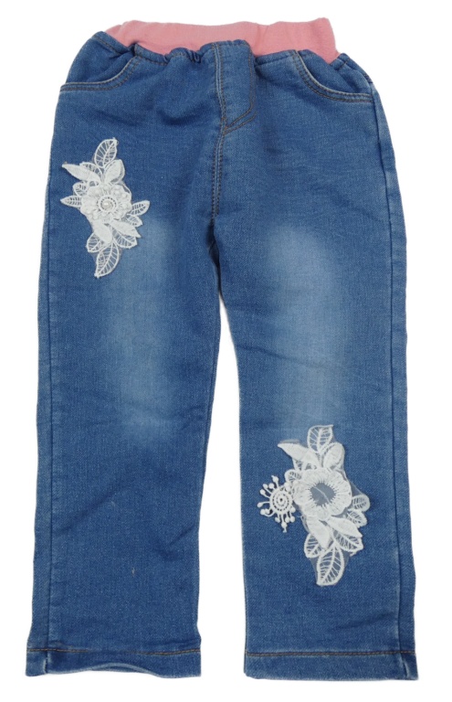 Modré teplákové rifle s krajkovými květy