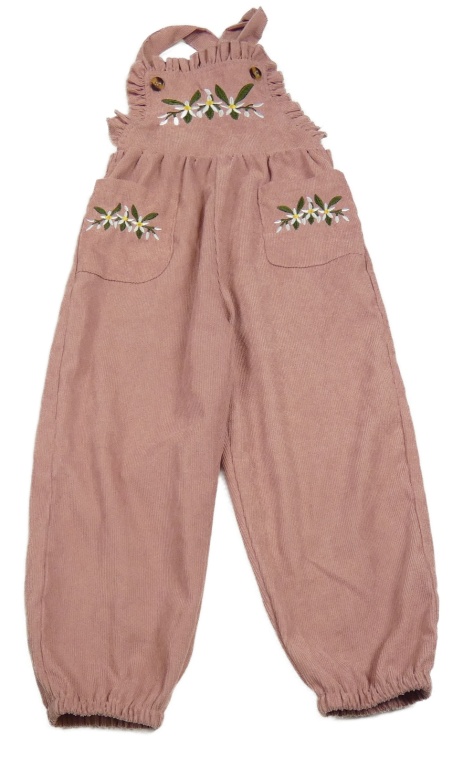 Starorůžové žebrované laclové kalhoty s výšivkami květin Shein