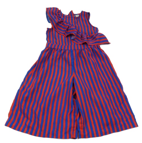 Červeno-tmavomodrý pruhovaný culottes overal s volánem Tu