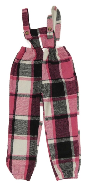Růžovo-černo-bílé kostkované laclové kalhoty