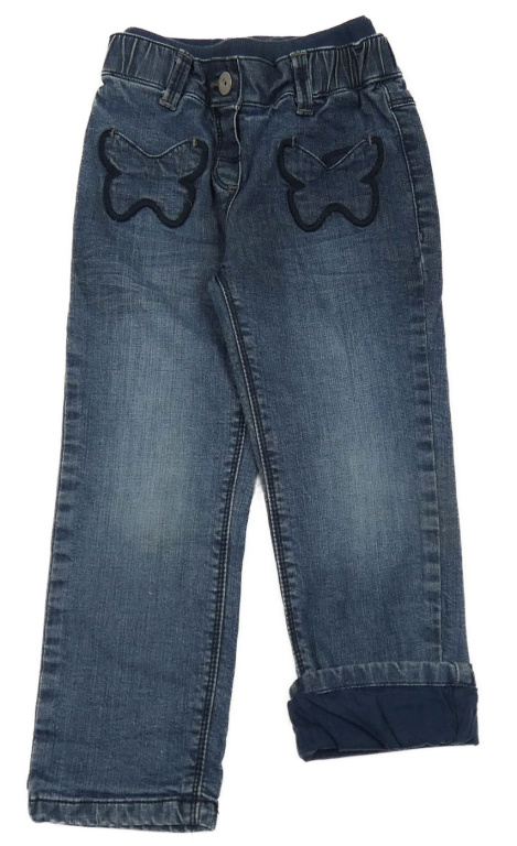 Tmavomodré podšité rifle s motýlky Vertbaudet