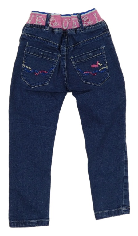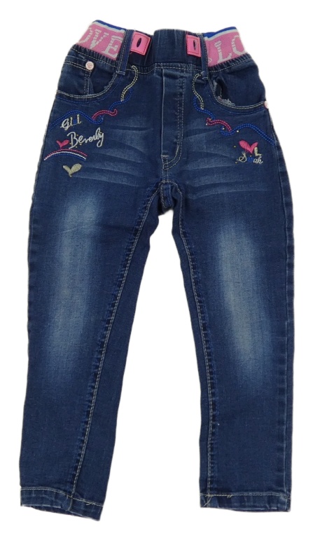 Tmavomodré skinny rifle s růžovým pasem a výšivkami