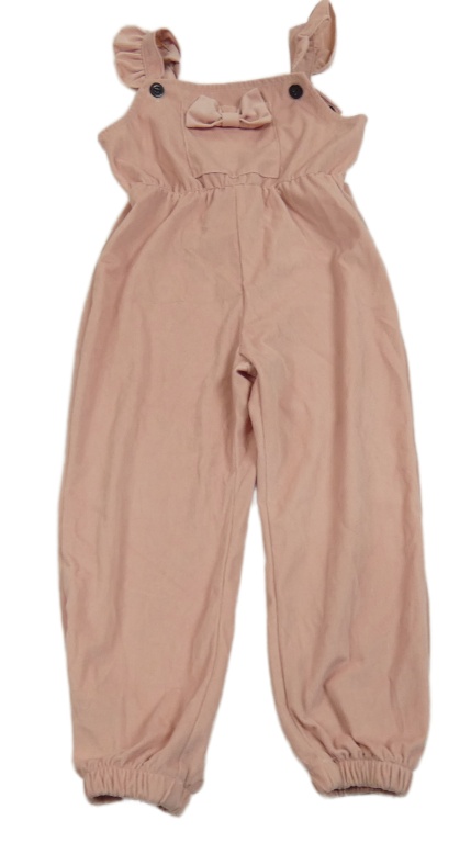 Světlerůžový žebrovaný sametový overal s mašlí