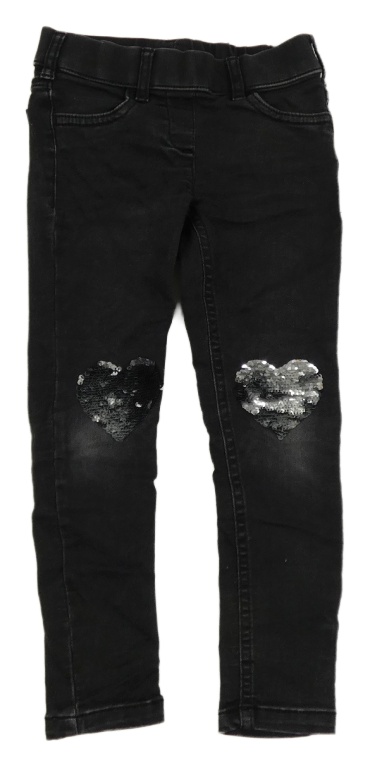 Černé džegíny se srdíčky z překlápěcích flitrů C&A