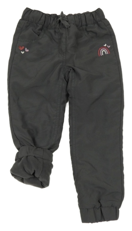 Tmavošedé šusťákové zateplené kalhoty s výšivkou duhy Topolino
