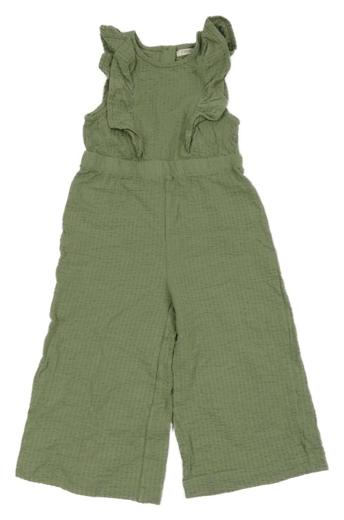 Khaki mačkaný kalhotový culottes overal s volánky Sfera