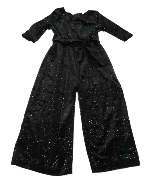 Černý sametový třpytivý kalhotový overal s páskem Dunnes