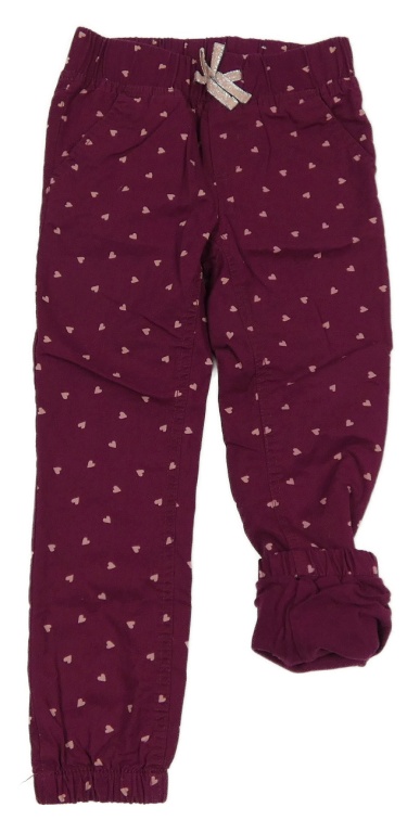 Nové - Tmavorůžové plátěné podšité kalhoty se srdíčky Dopodopo