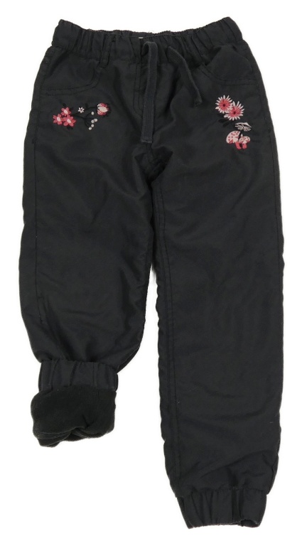 Tmavošedé šusťákové podšité kalhoty s kytičkami Topolino