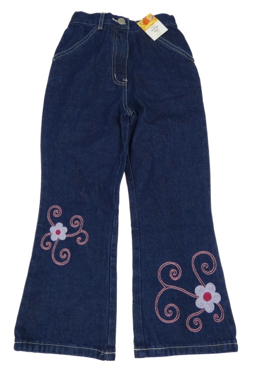 Nové - Tmavomodré bootleg rifle s výšivkami květin Adams