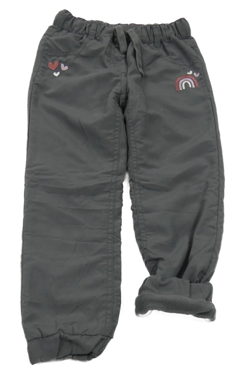 Tmavošedé zateplené šusťákové cuff kalhoty s výšivkami Topolino
