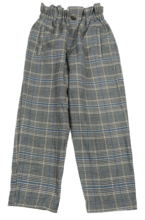 Černo-bílo-hnědo-modré kostkované vzorované paper bag crop kalhoty ZARA