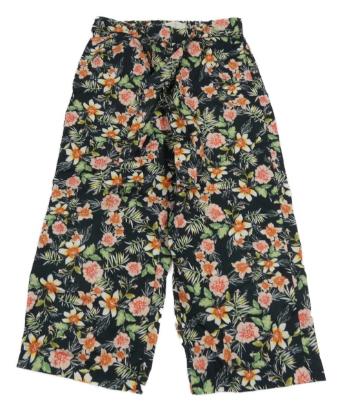 Černo-růžovo-zelené květované lehké kalhoty s páskem mango