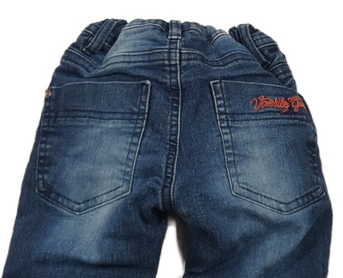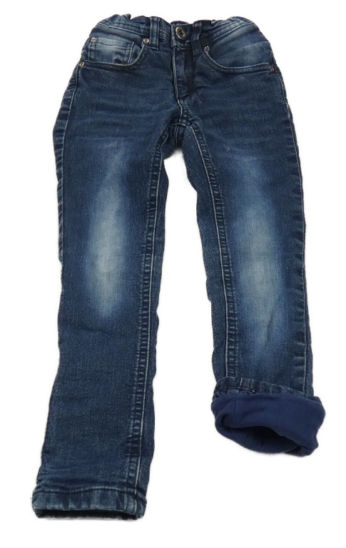 Tmavomodré skinny podšité rifle s nápisem POCOPIANO