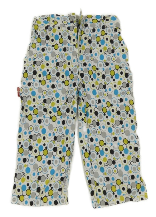 Bílo-šedo-modré puntíkaté plátěné capri kalhoty