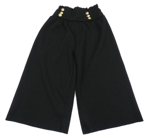 Černé žebrované široké crop kalhoty s gombíky