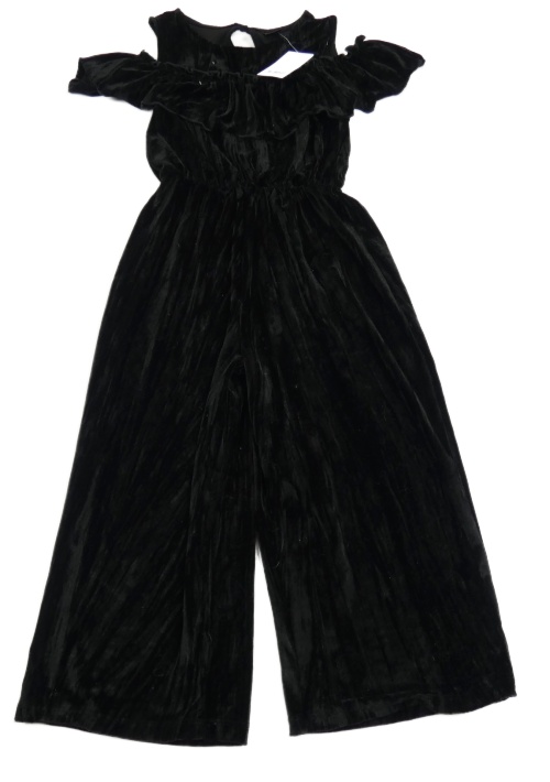 • Nové - černý sametový kalhotový culottes overal s volánkem a volnými rameny Next