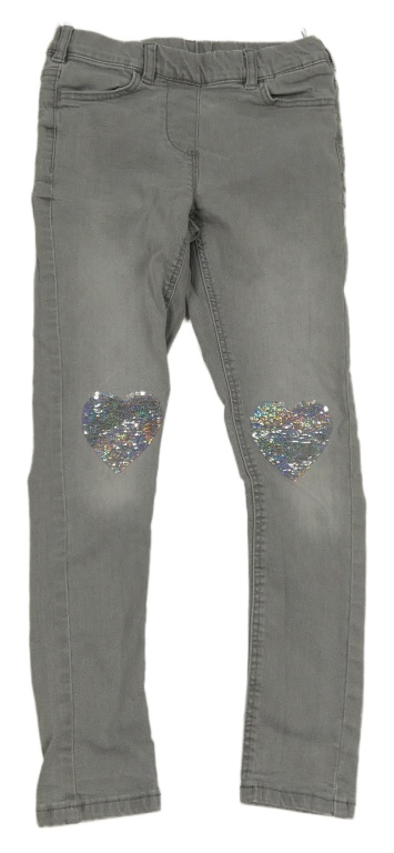 Šedé riflové džegíny se srdíčky z překlápěcích flitrů C&A