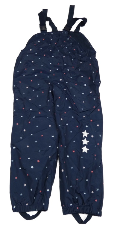 Tmavomodré šusťákové podšité laclové kalhoty s hvězdami Topolino