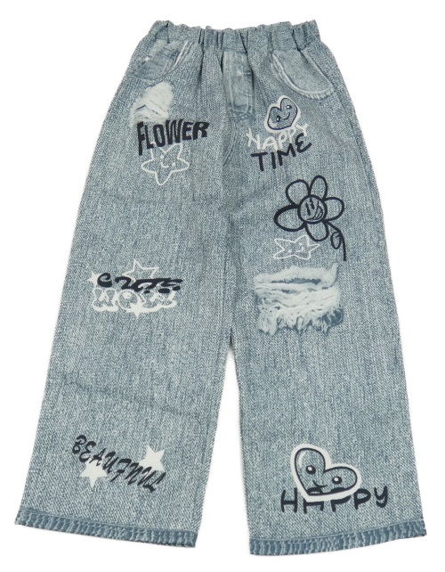 Modro-bílé lehké kalhoty s nápisy