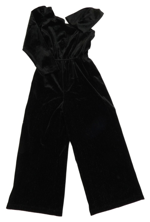 Černý sametový třpytivý kalhotový overal s jedním rukávem Zara