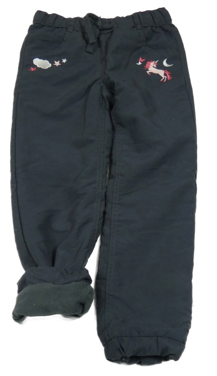 Antracitové šusťákové zateplené kalhoty s jednorožcem Topolino