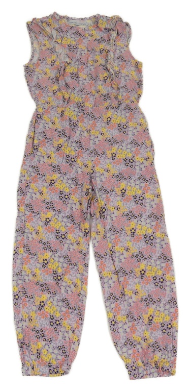 Světlerůžový kalhotový overal s kytičkami a volánky POCOPIANO
