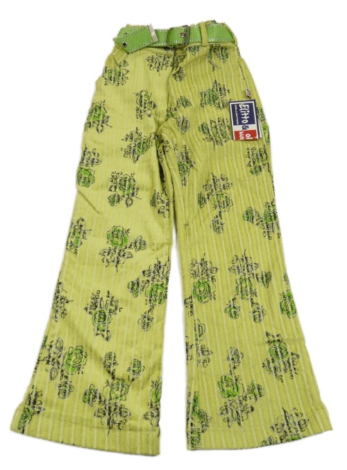 Nové - Zelené květované flare manšestráky s páskem