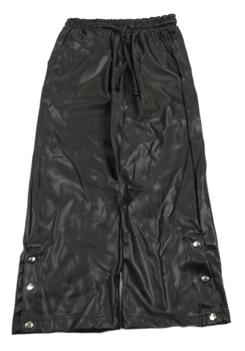 Černé koženkové široké kalhoty s cvoky