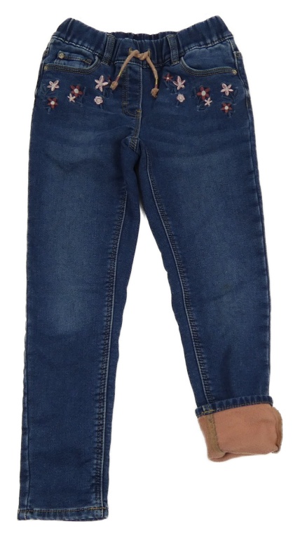 Tmavomodré teplákové zateplené skinny rifle s květy C&A
